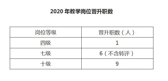 为科学合理使用学院各等级岗位,根据上级主管部门关于职数核定及使用要求,结合学院年度职称工作安排,学院党委研究决定按比例控制晋升指标。现将2020度年使用专业技术职务岗位晋升职数公布如下: